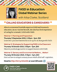 A transformative three-part webinar series for educators, caregivers/parents or administrators keen on understanding and supporting students with Fetal Alcohol Spectrum Disorders (FASD). Join us for an enlightening three-part webinar series designed to equip you with the knowledge, strategies, and resources to make a real difference in the lives of students with Fetal Alcohol Spectrum Disorder (FASD).